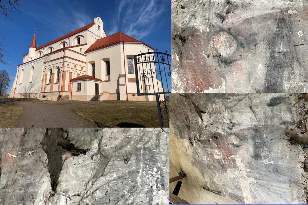 Restauruojant Simno bažnyčios šoninius altorius, rasti sienų tapybos fragmentai